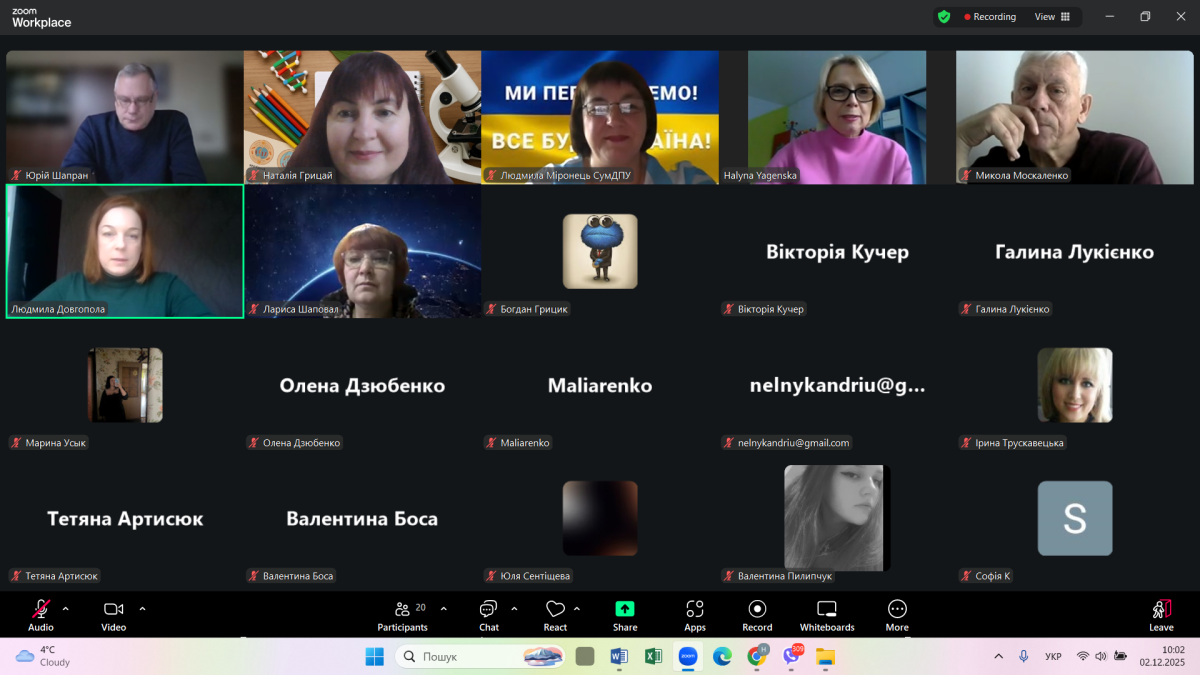 Після основної частини вебінару відбулася жвава дискусія. Учасники ставили запитання стосовно методики використання класифікаційних карток, можливостей віртуальних моделей у навчанні та особливостей формування навичок моделювання в здобувачів базової освіти. Обговорення засвідчило актуальність теми для сучасної природничої освітньої галузі та високий запит на інноваційні методичні інструменти.