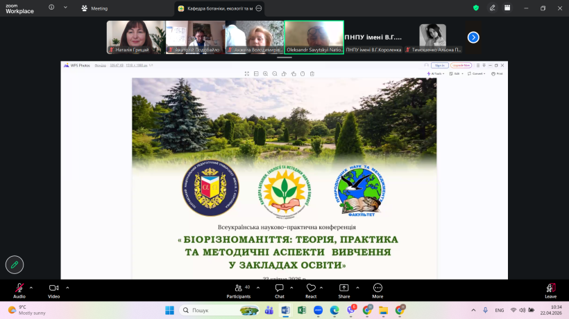 23 квітня 2026 року в Полтавському національному педагогічному університеті імені В.Г.Короленка відбулася Всеукраїнська науково-практична конференція «БІОРІЗНОМАНІТТЯ: ТЕОРІЯ, ПРАКТИКА ТА МЕТОДИЧНІ АСПЕКТИ ВИВЧЕННЯ У ЗАКЛАДАХ ОСВІТИ».